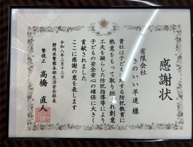 その進め方が静岡県警の方々から大変良い評価をいただき、今回感謝状をいただくこととなりました🙇♂️