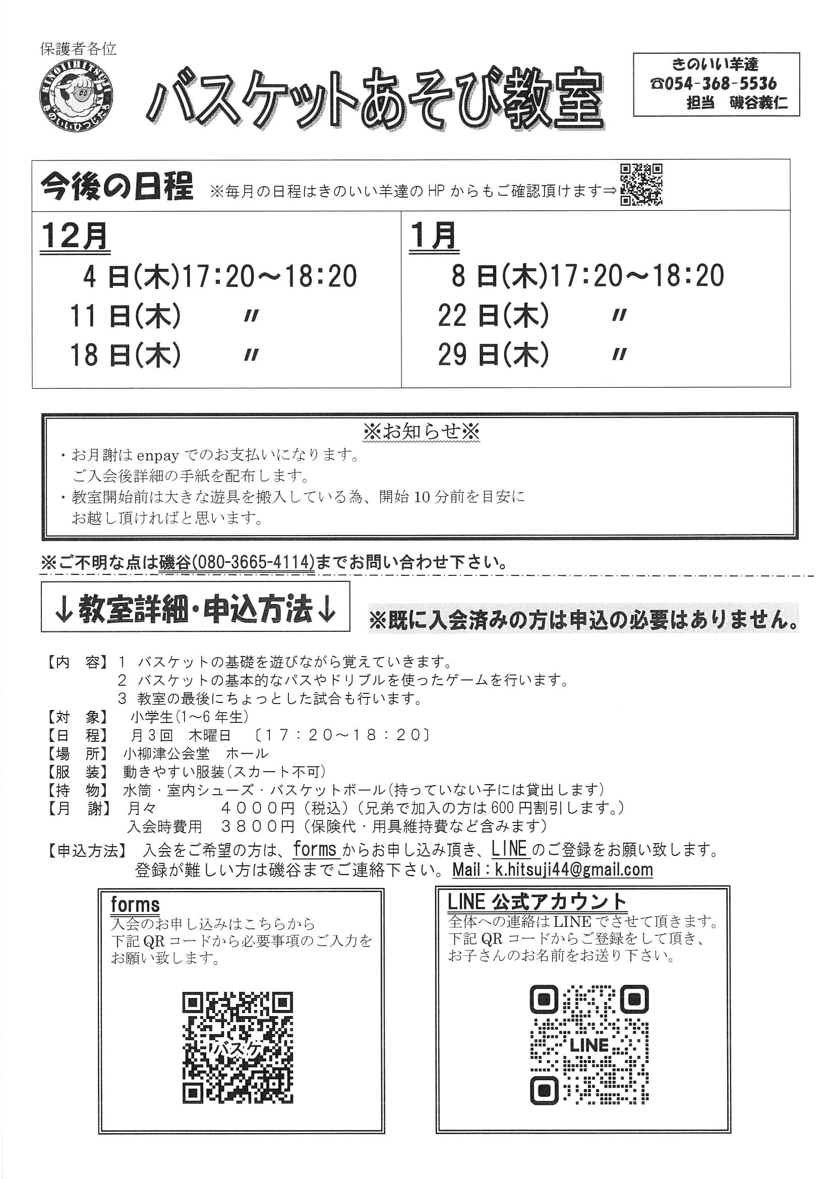 焼津 小柳津バスケあそび教室